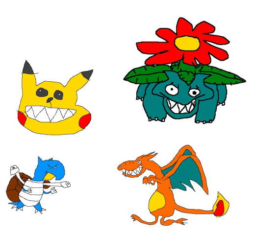 A rendition of the original starter Pokemon. I really feel like I've captured their true essences here.
