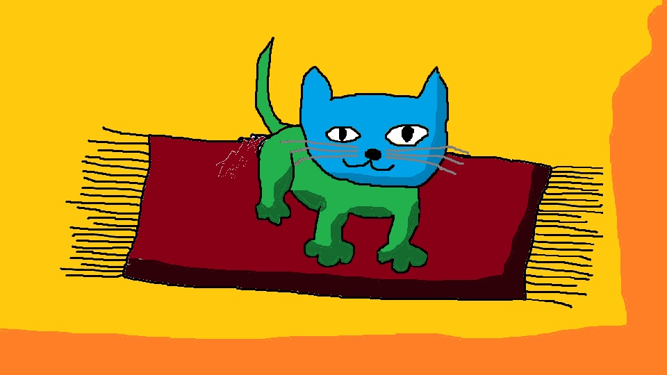 This fine art is a multi-coloured cat. We've used some advanced shading on the cat, the rug and the background because you should always use shading everywhere at all times.