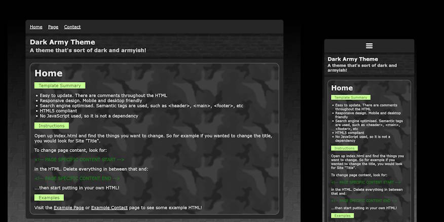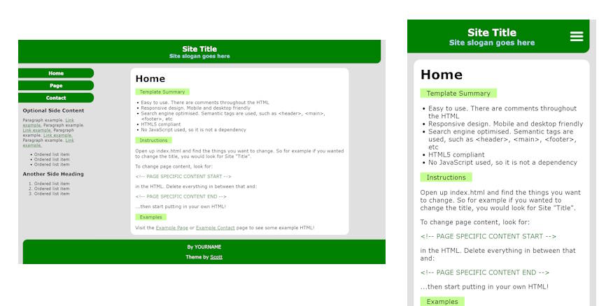 Some of these I designed myself, and some of them are templates from old websites that I've updated for modern devices. For the latter, the original credits are always left in the template footer.